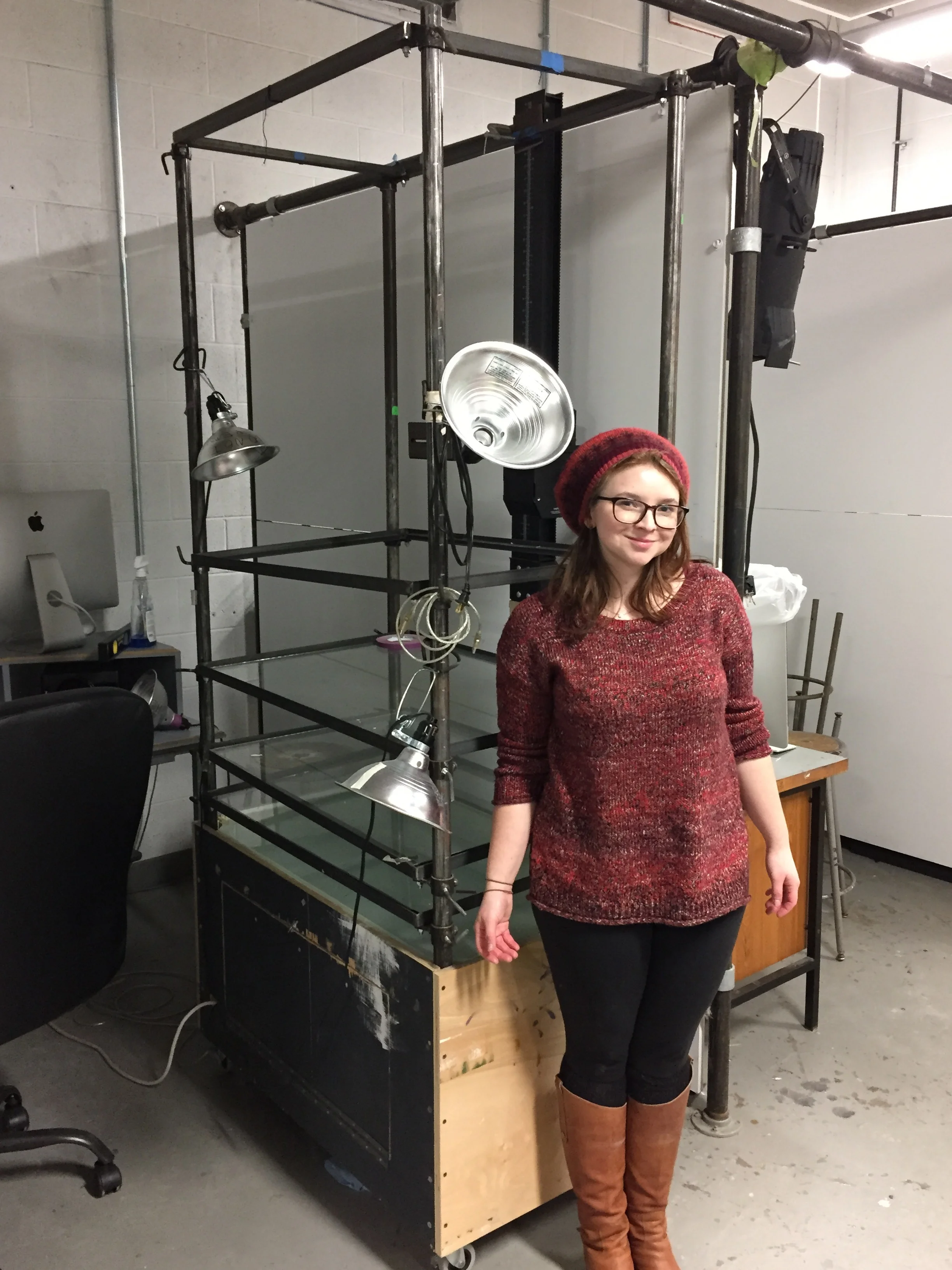 A year and a half ago, I returned to Bennington and the first thing I needed to visit was my animation trick-table. School wasn't in session so I wasn't nearly as devastated that no one was utilizing my creation as I would have been had students been there. I still have my original design plans for this beauty and I know that when I have more spare time, I'll recreate it and devote myself to more projects like this one. One day...